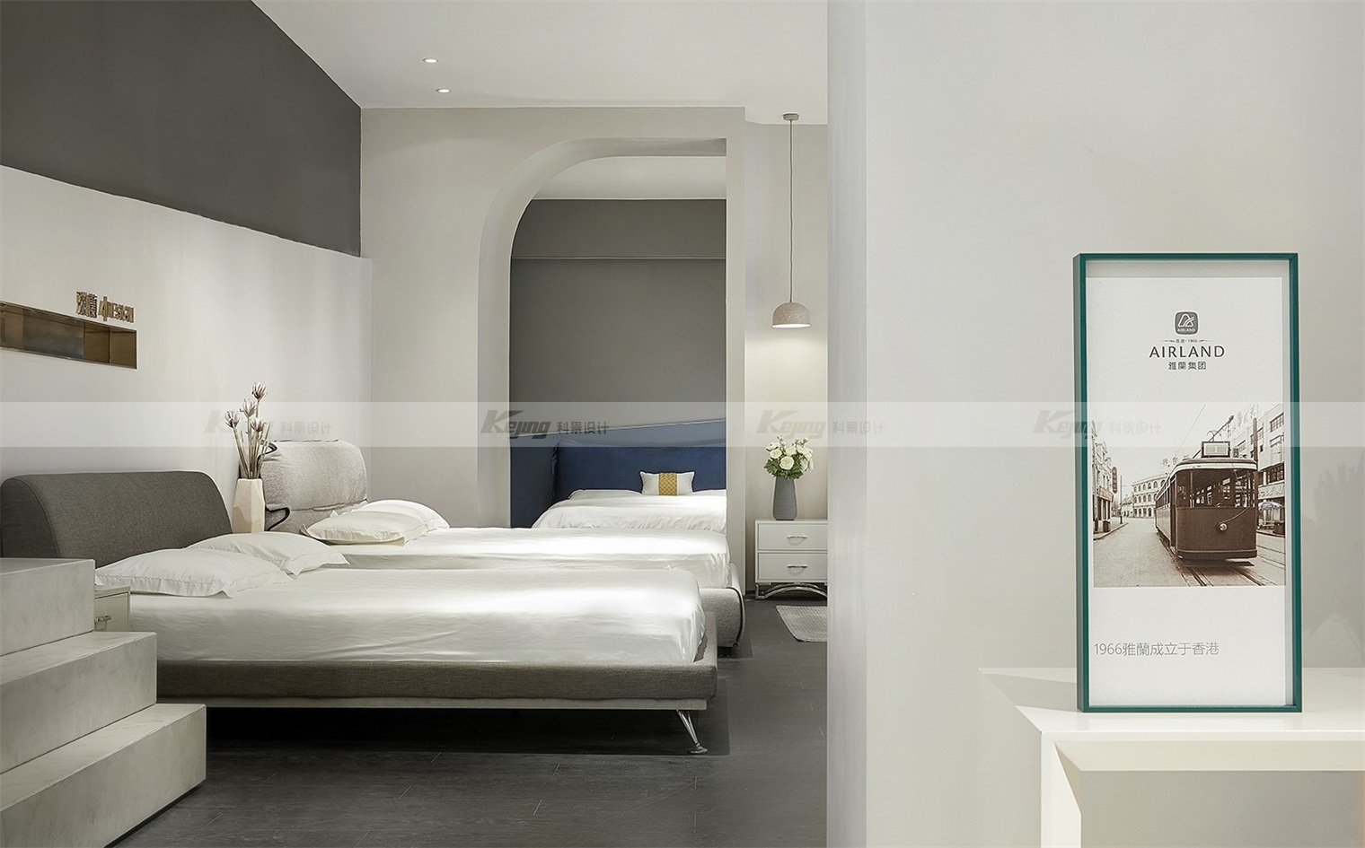 AIRLAND is the world's first 3000 level sleep kingdom experience pavilion, creating a new sleep experience and services, AIRLAND has been dreaming every day for 52 years! To the pursuit of quality life people bring a natural comfortable sleep and harmonious beauty! AIRLAND Sleep Kingdom innovatively takes the greater user experience as the original intention of its design. Whether it is the planning of spatial movement lines or the partitioning of different functions, it starts from the "spiritual feeling" of users. From teenagers, customized wedding rooms, to Jane European style, green area, and considerate rest room... Scientific and reasonable area division creates immersive home life experience in silence. Abandoning the product-based planning and design of traditional stores, AIRLAND Sleep Kingdom innovatively starts from the user's spiritual feelings and creates a shopping atmosphere based on scene experience, so that end consumers can enjoy all kinds of sleep experiences in a panoramic view. You will find that there are not only goods for sale here, but also different people's different visions of home. Above the simple appearance, the elegant pavilion adopts pure white as the main color, with the elegant blue and green as the local ornament of the brand image, elegant and fresh.