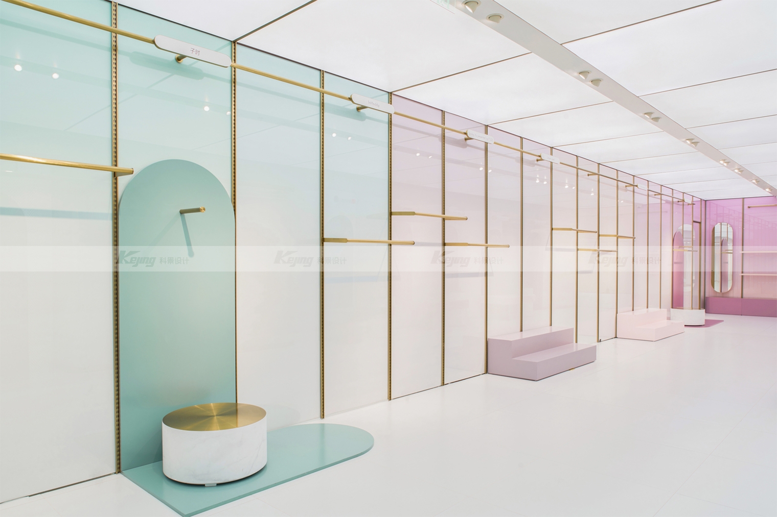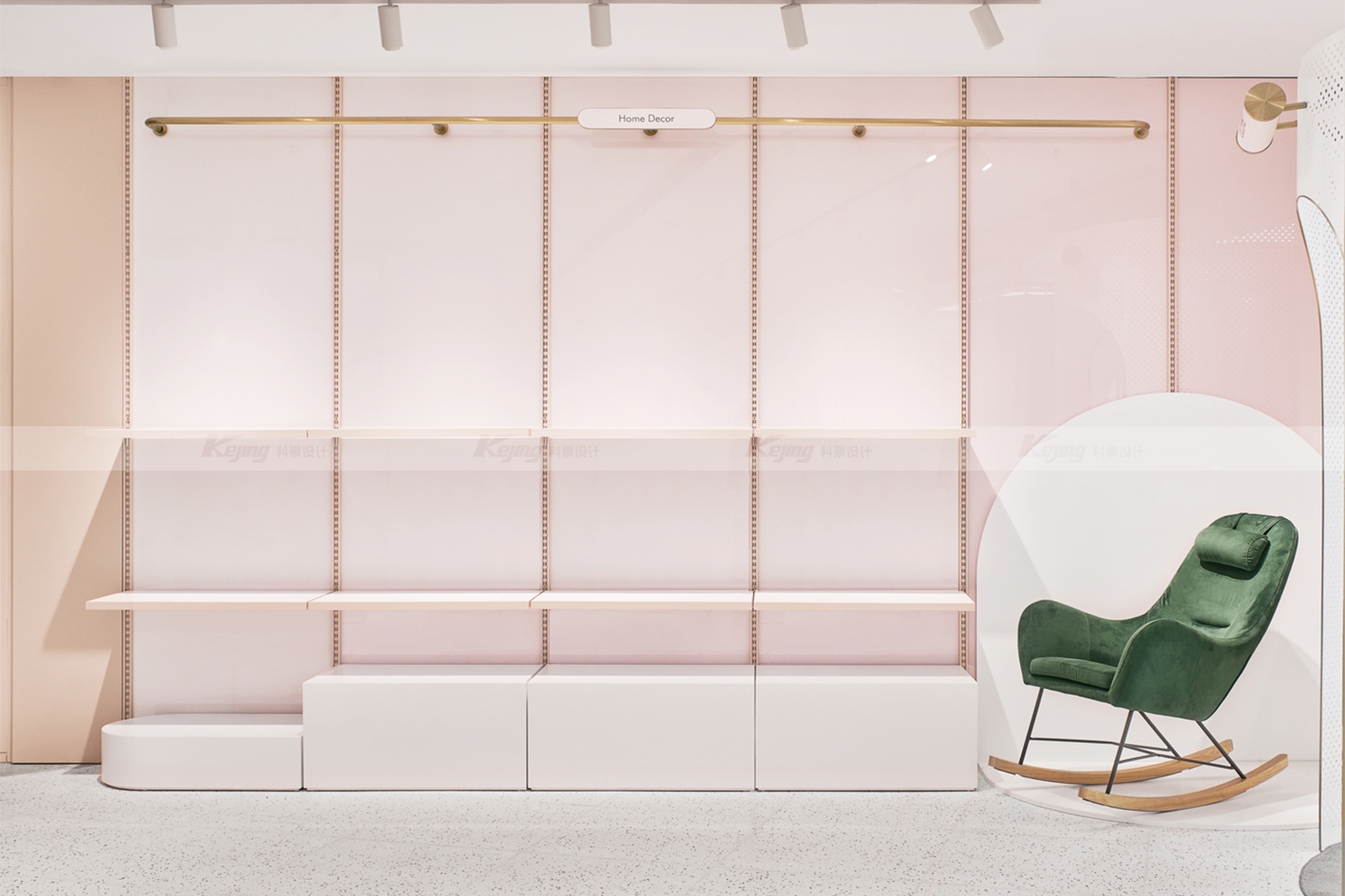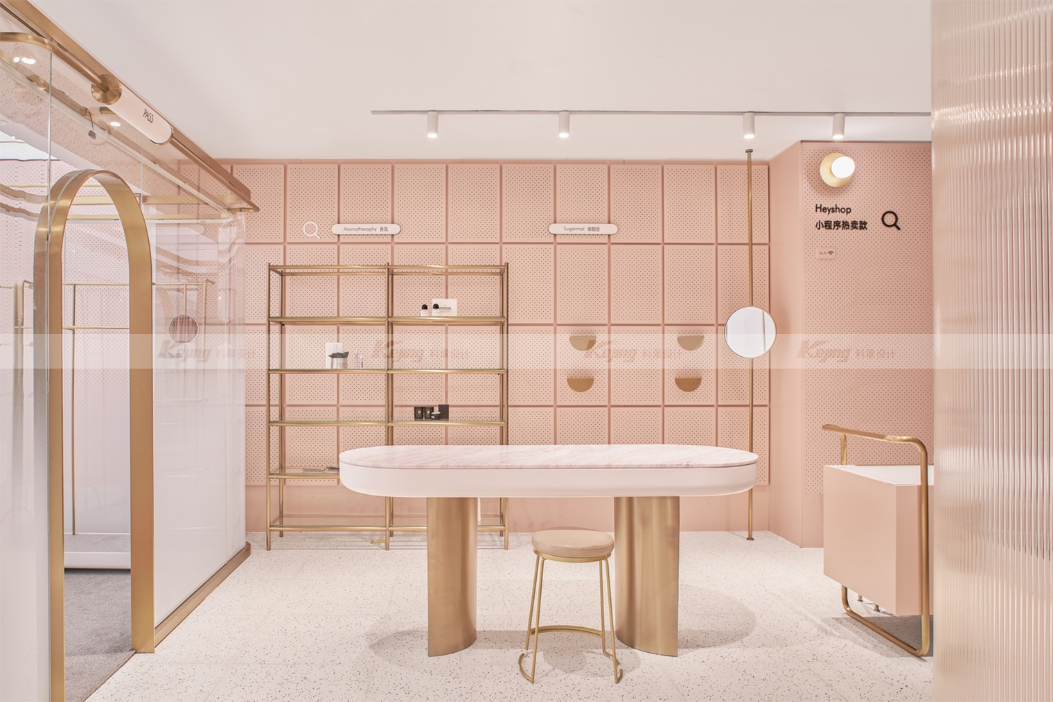 Heyshop's new retail collection store is our practice of offline design in this new era of Internet retailing. Shop design is full of subversion of traditional design and adaptation to the new OMO mode. Different from traditional shops, the biggest characteristic of Heyshop is its flexibility. She displays goods from different brands and categories. Based on the analysis of big data, each product cannot guarantee whether it will stay in the store or not. In order to meet this characteristic, we adopted the most flexible display mode of the cave board. At the same time, the monotonous display form of the current board is improved to make it both beautiful and practical. Another point that breaks the iron law of traditional store design is the warehouse front, which is also based on the new retail characteristics of OMO. Under the new retail, Heyshop can make the storage space in the "cloud". The store has transformed from a sales space in the traditional sense into a display and experience space.