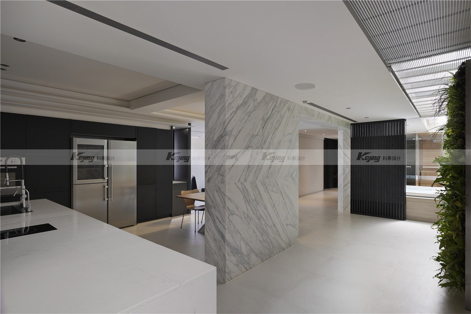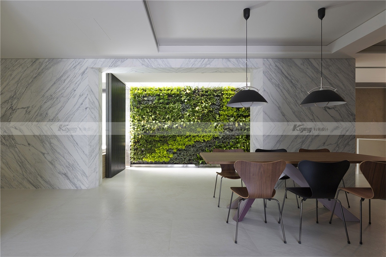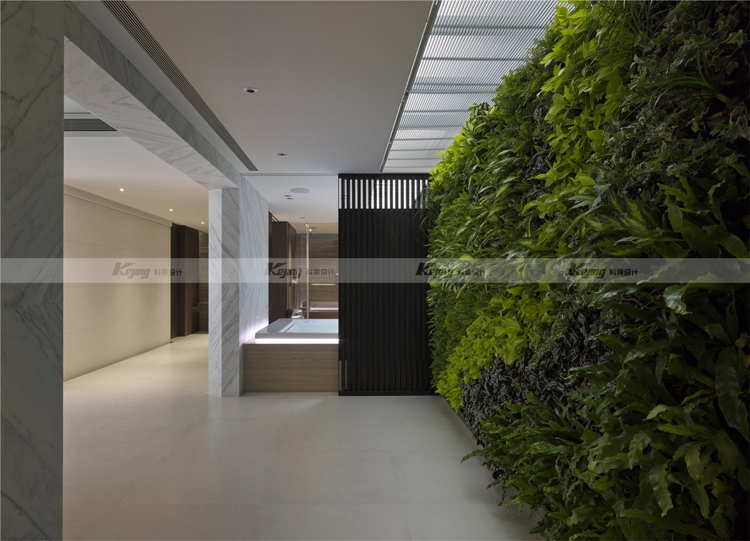 The facade of the building is covered with extended cubes connecting the indoor and outdoor Spaces, and the mirrored stainless steel material integrates the external environment and the building. The flat-roofed roof garden continues the simplicity of the rectangular block of the building. Like the installation art, the milk carton turns over and spills a pool of grass, sprinkling humorous vocabulary for modernism. Following the spirit of modernist architecture: "free plane" and "flowing space", simple facades and exquisite materials, such as the main wall of lime stone, the back wall of white marble and the vertical wall of green plants, crisscrossed vertical horizontal facades construct simplicity and purity of form.