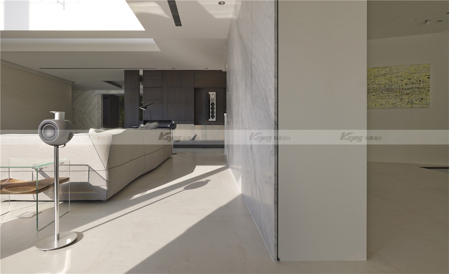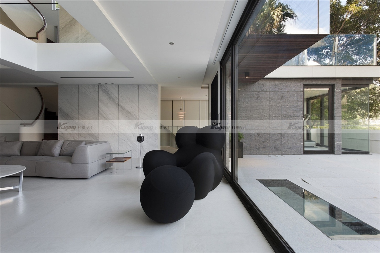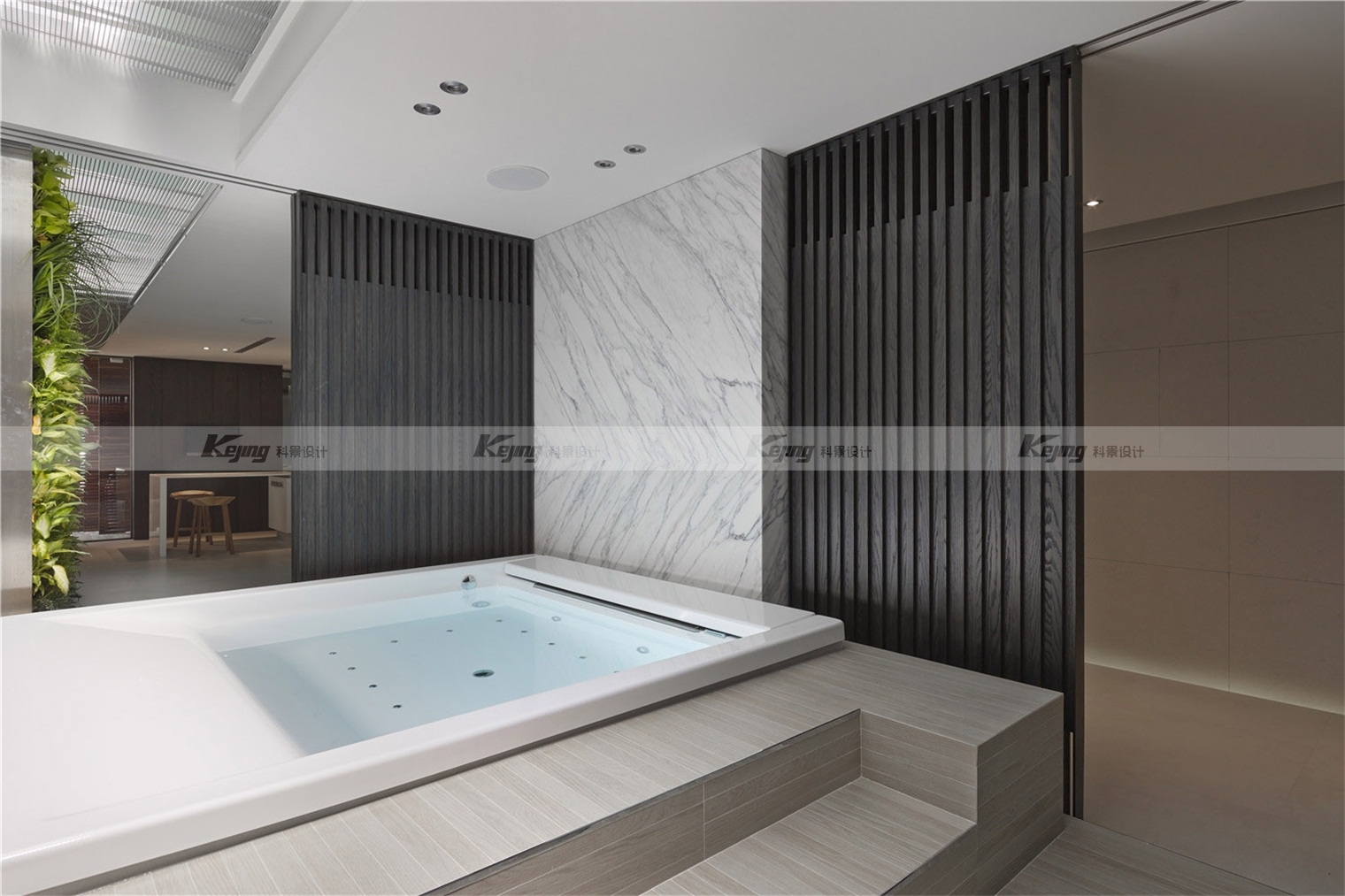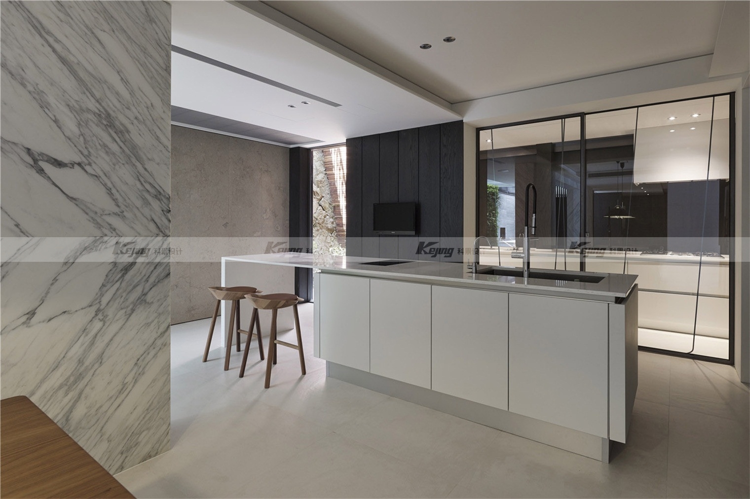 The facade of the building is covered with extended cubes connecting the indoor and outdoor Spaces, and the mirrored stainless steel material integrates the external environment and the building. The flat-roofed roof garden continues the simplicity of the rectangular block of the building. Like the installation art, the milk carton turns over and spills a pool of grass, sprinkling humorous vocabulary for modernism. Following the spirit of modernist architecture: "free plane" and "flowing space", simple facades and exquisite materials, such as the main wall of lime stone, the back wall of white marble and the vertical wall of green plants, crisscrossed vertical horizontal facades construct simplicity and purity of form.