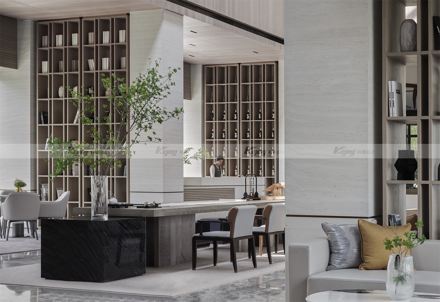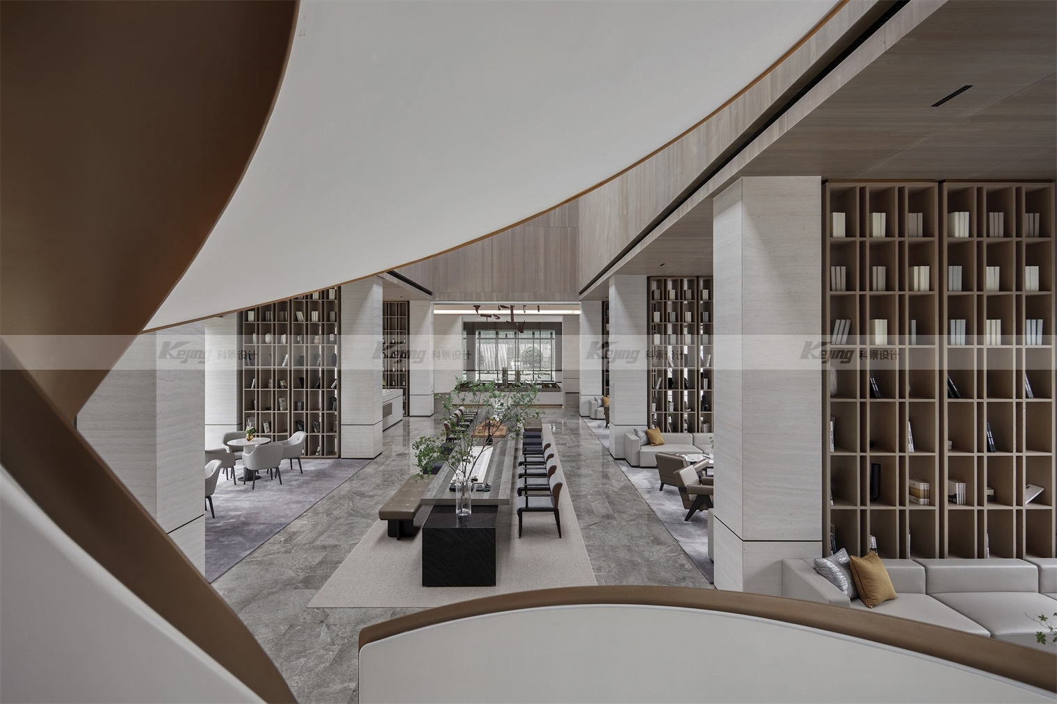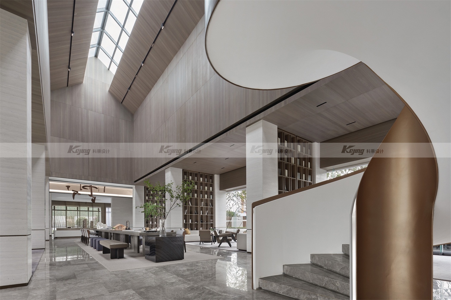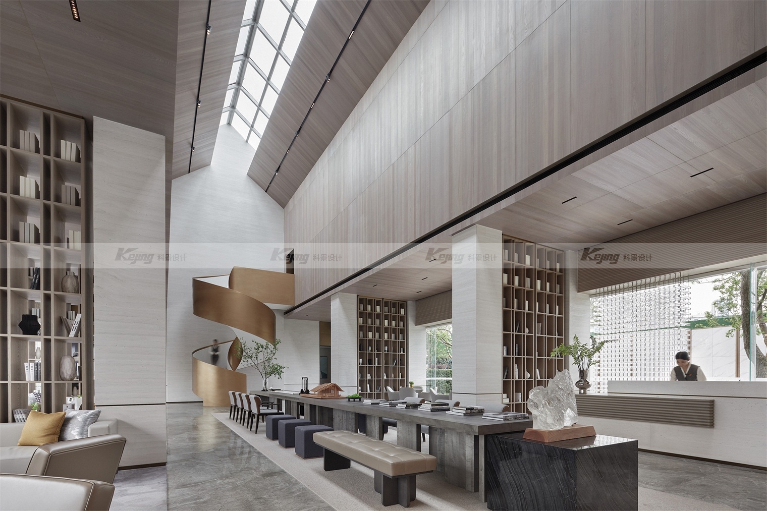 从现代主义、当代艺术、书院、美术馆、园林的方式切入,相互融合来讲述。晨光、午日、黄昏,不同时段、不同季节的阳光照进空间,亦如翁森“四时读书乐”中的精神家园。提出“ 将园林艺术中的东方审美,回应现代主义的自然与豁达。呈现柔和、雅洁,平静自然的和谐场域。”从中国古代山水书画中寻找设计的灵感,诗意的都市自然,新的美学特征诠释文化意境,回归自然的场所精神。