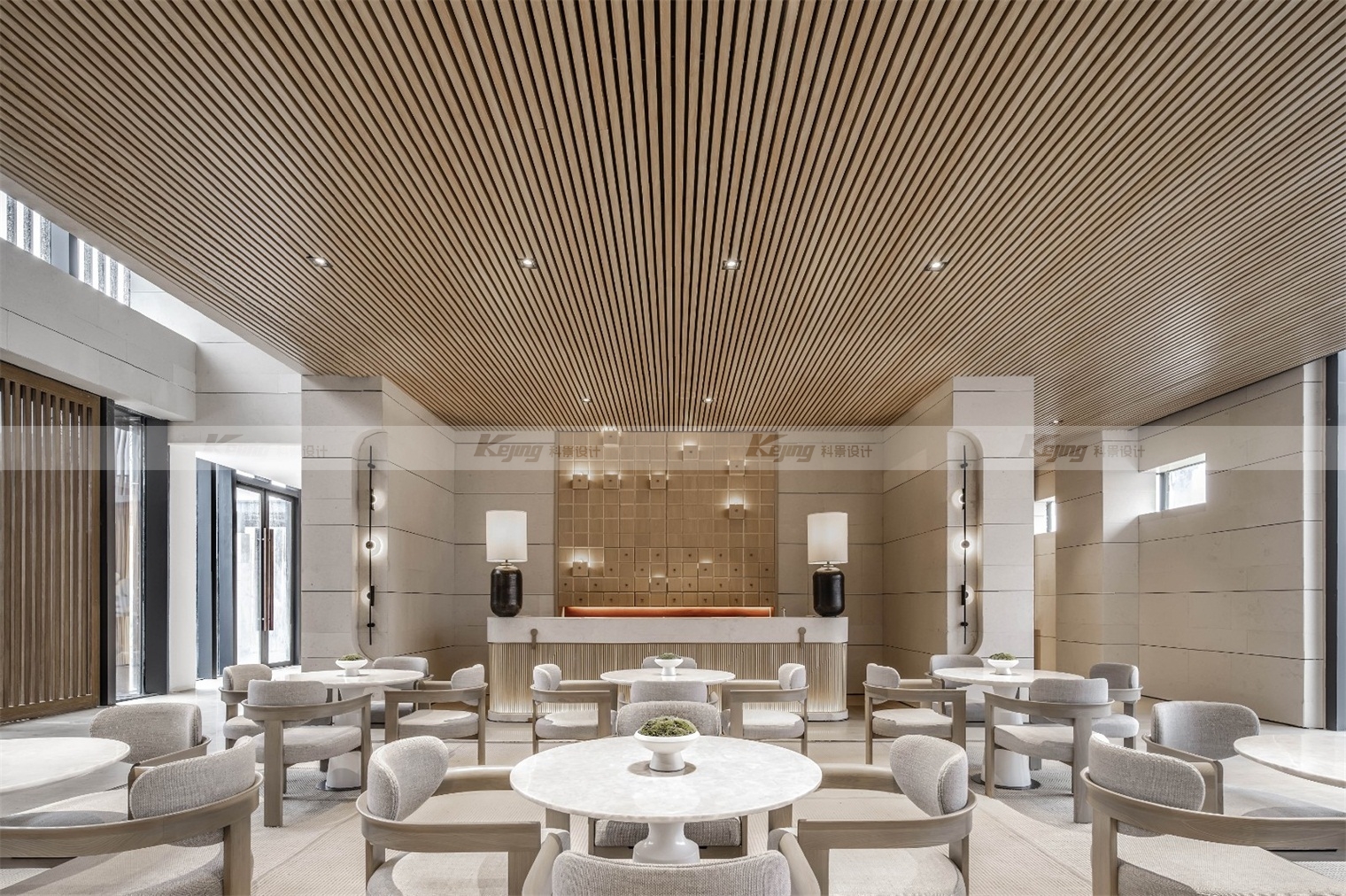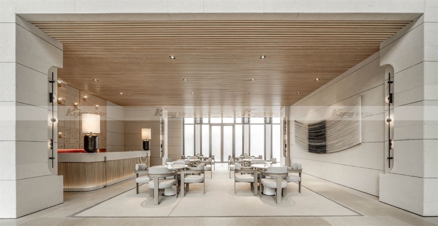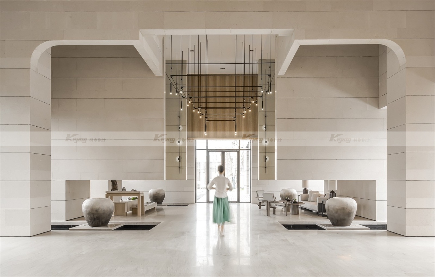 The designer first USES the Oriental classical symmetry aesthetics, stabilizes the space proportion, and gives the space a very imposing high and empty design, so that the space brings out a magnificent and quiet sense of dignity in the four fields. Clean and concise metope, a piece of blank space, stable the person's mood. Symmetrical Chinese structure aesthetics is widely used in the space, or the four corners are in pairs, or the two pairs are opposite, and the elegant structure beauty can be seen in different scenes. In this Zen space, I constantly see the refined modern aesthetic thinking, showing the comfort and delicacy without any violation.