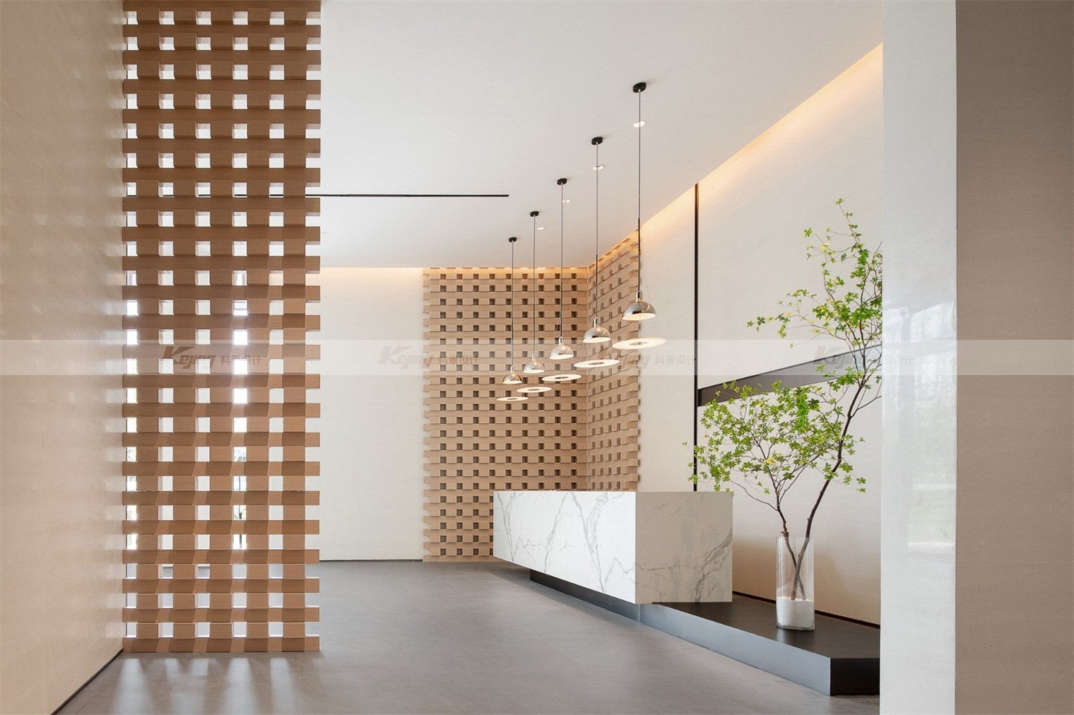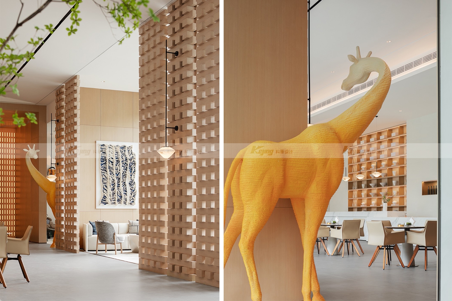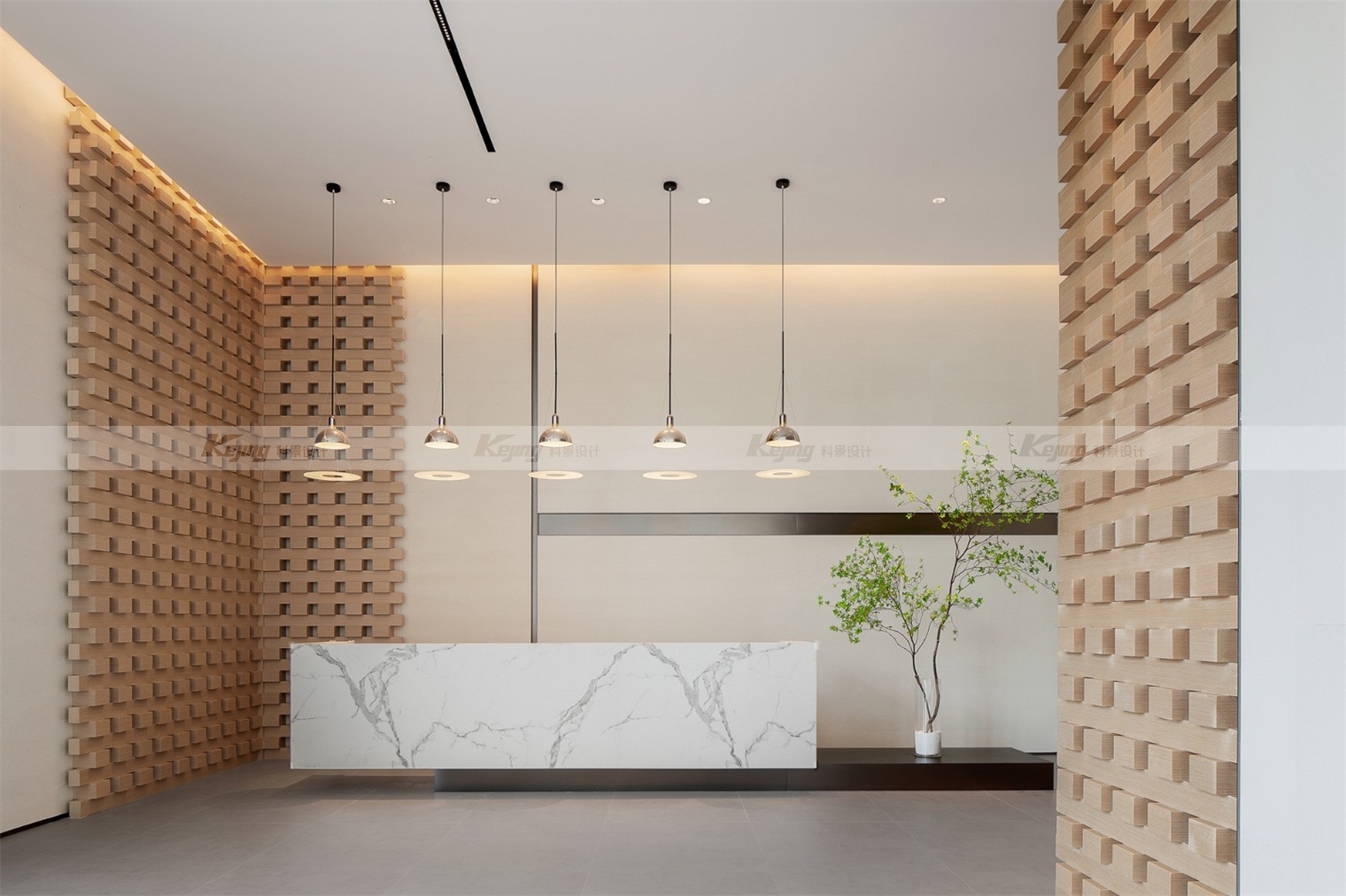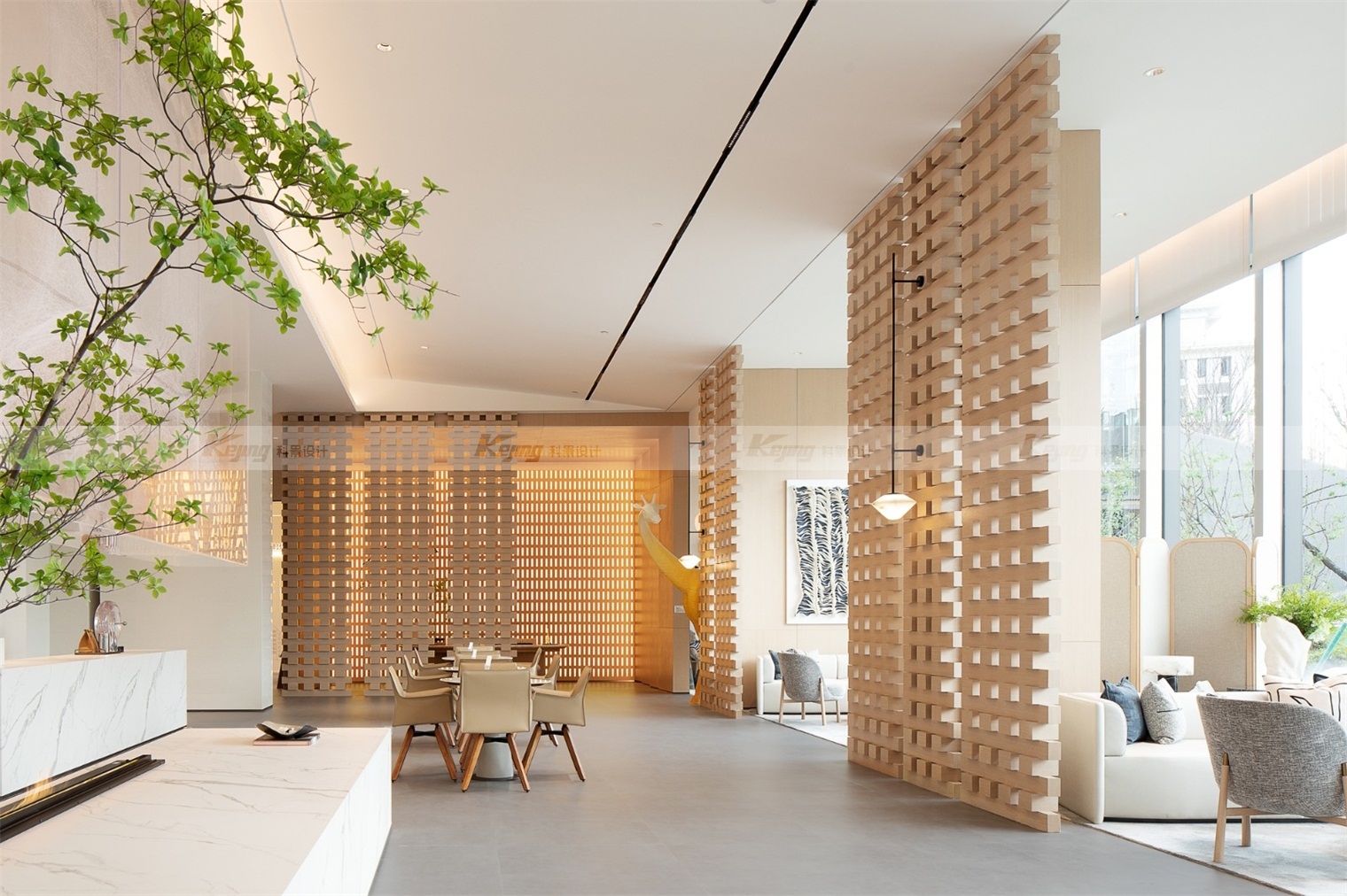西园之树,停云载荣,以山为根,以海为载。在空间整体色调上选择明快清爽的白色、有温度的原木色构成整个空间的色彩基调,在形式上用简洁几何线条平衡空间的美感与功能需求,为空间注入清爽鲜活。