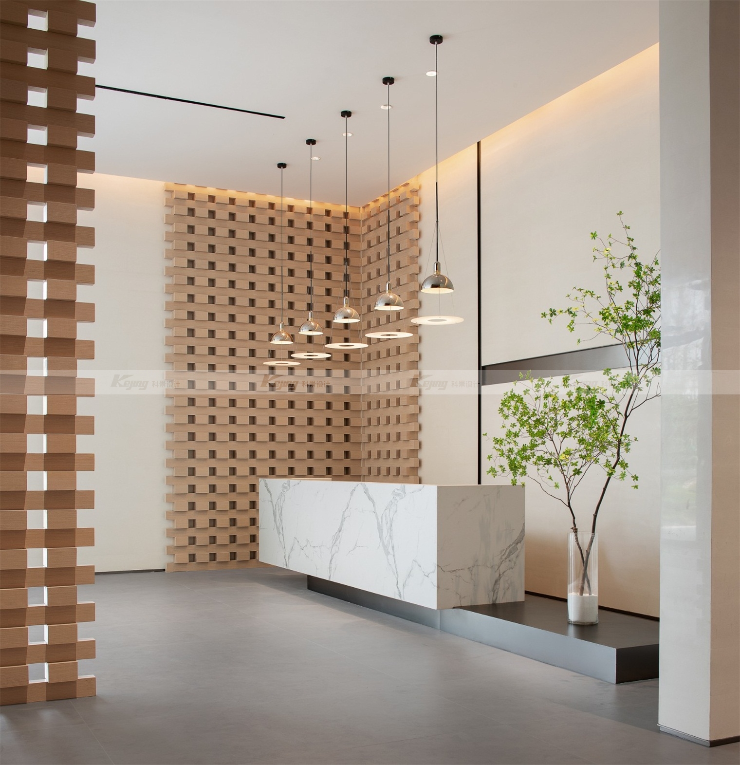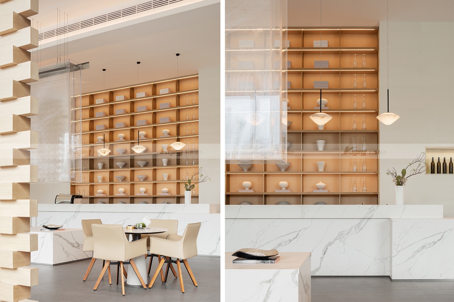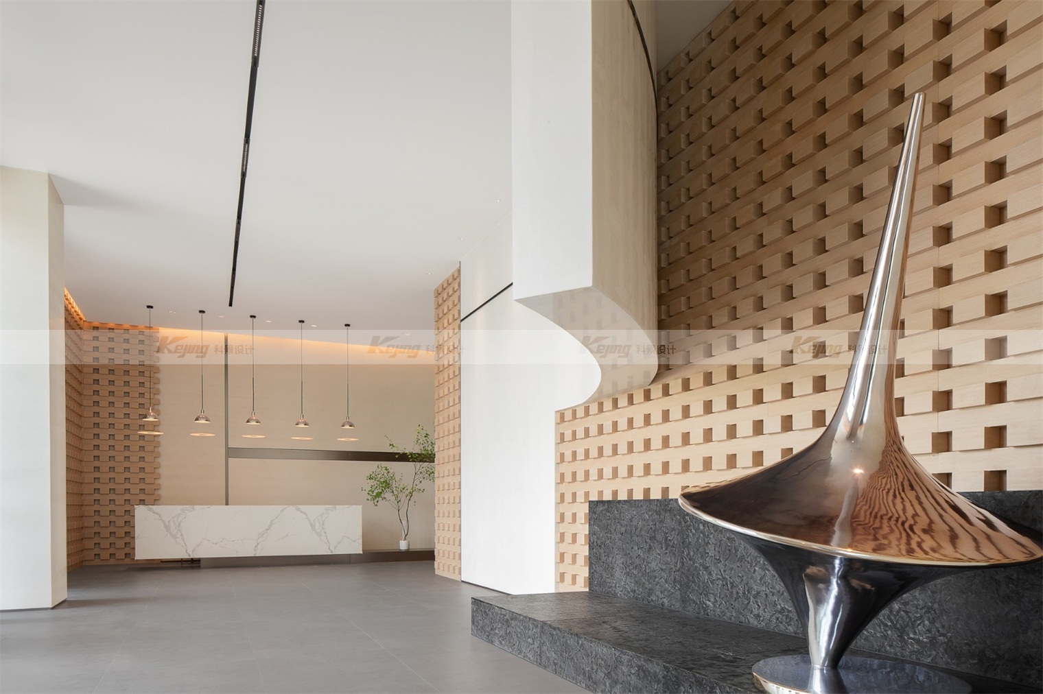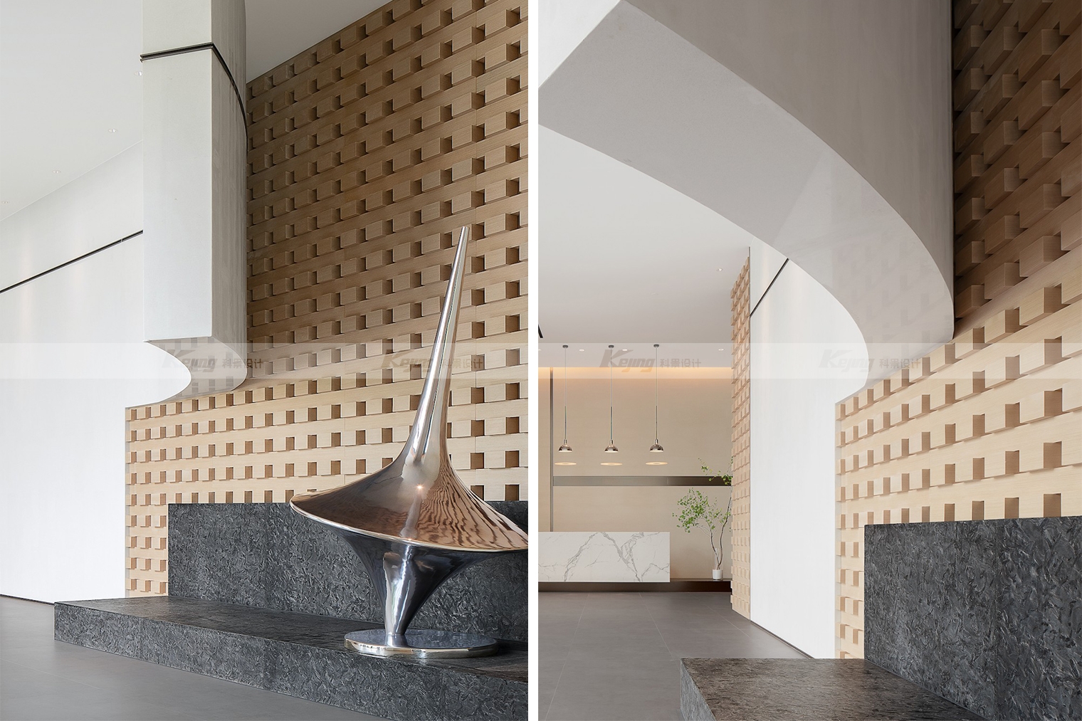 西园之树,停云载荣,以山为根,以海为载。在空间整体色调上选择明快清爽的白色、有温度的原木色构成整个空间的色彩基调,在形式上用简洁几何线条平衡空间的美感与功能需求,为空间注入清爽鲜活。