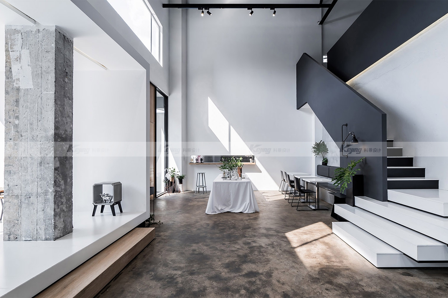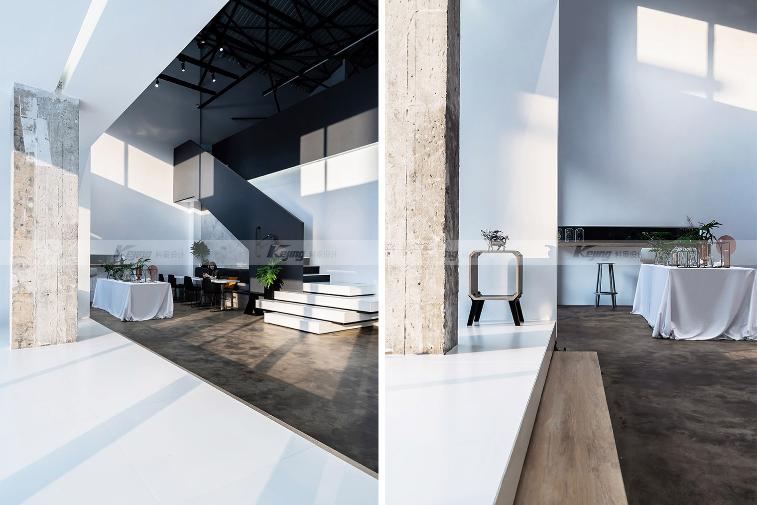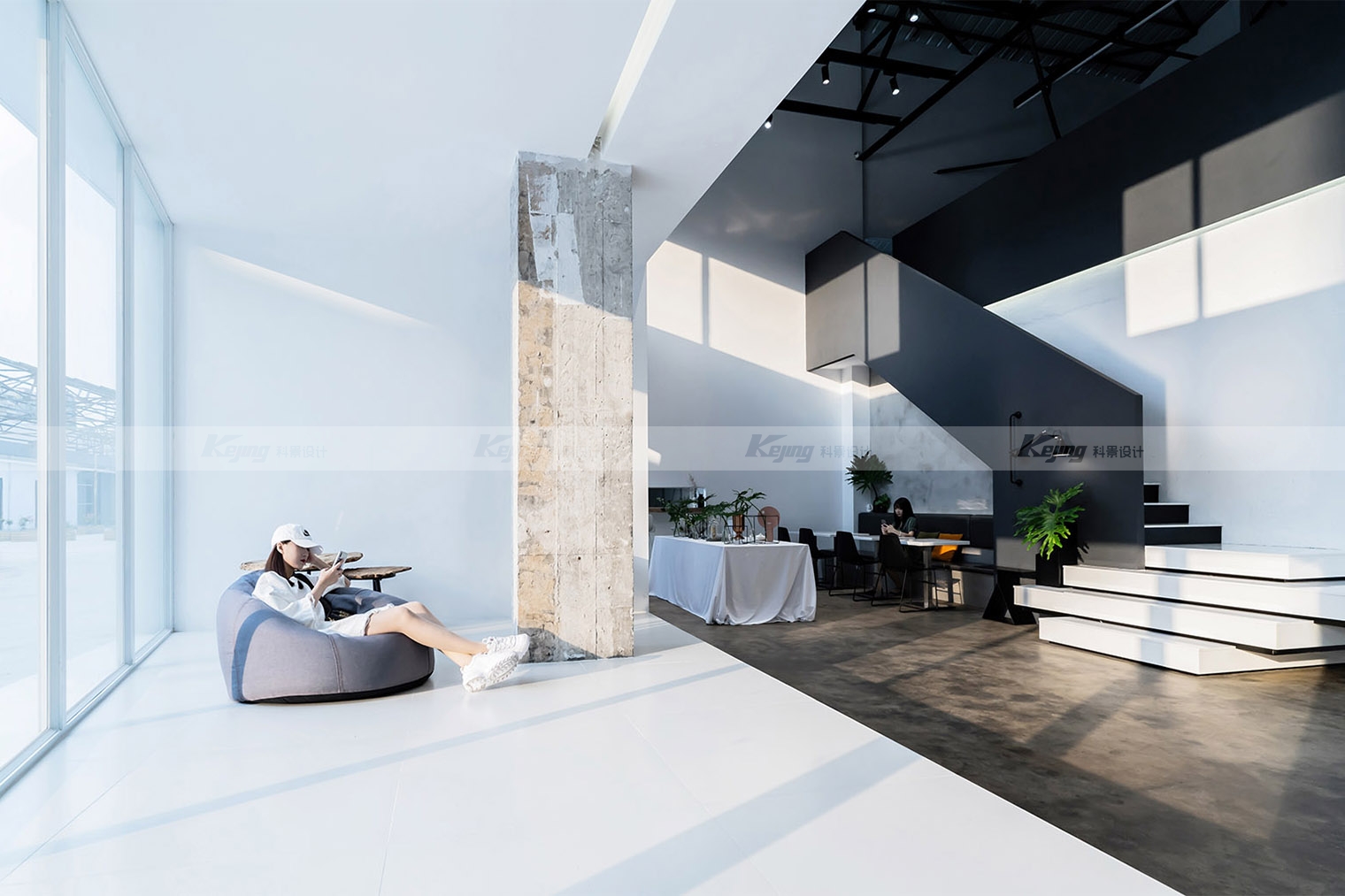 The first floor is the free space for dining and holding various activities, the second floor is the studio and design work area, with a bright stair handrail for silent division. The design aims to create an "empty" part of the space. The walls are mainly white and retain the original texture of the factory building. The sunlight through the doors and Windows makes the shadow move like an hour hand in the space, showing different expressions with the change of time and weather, giving guests different feelings.