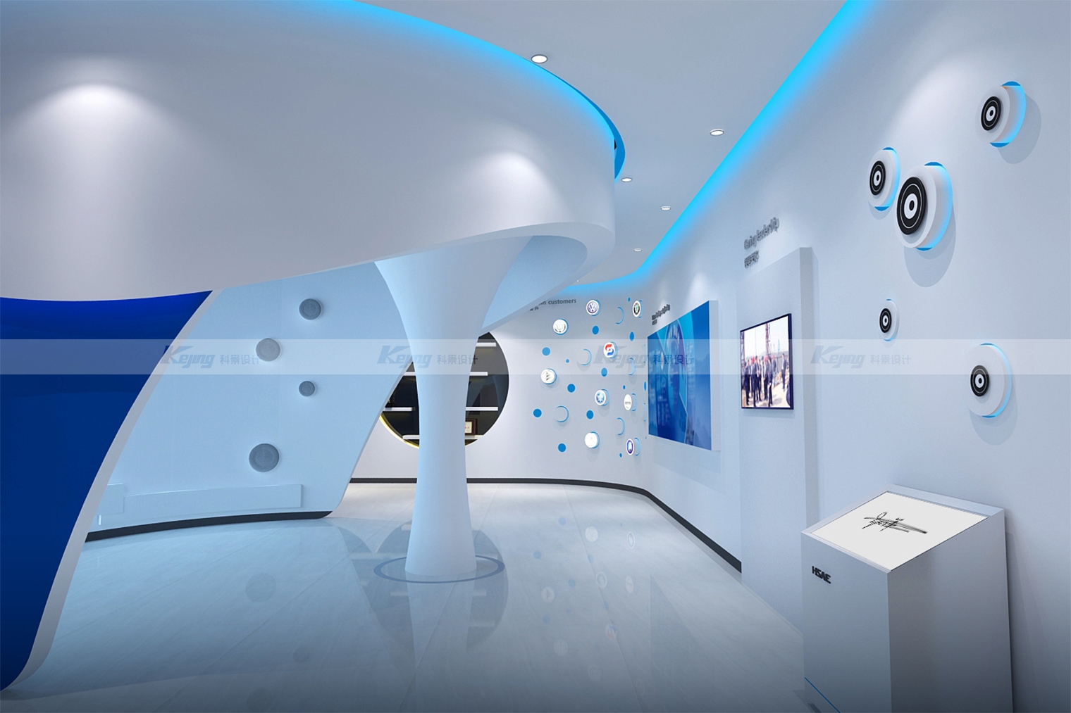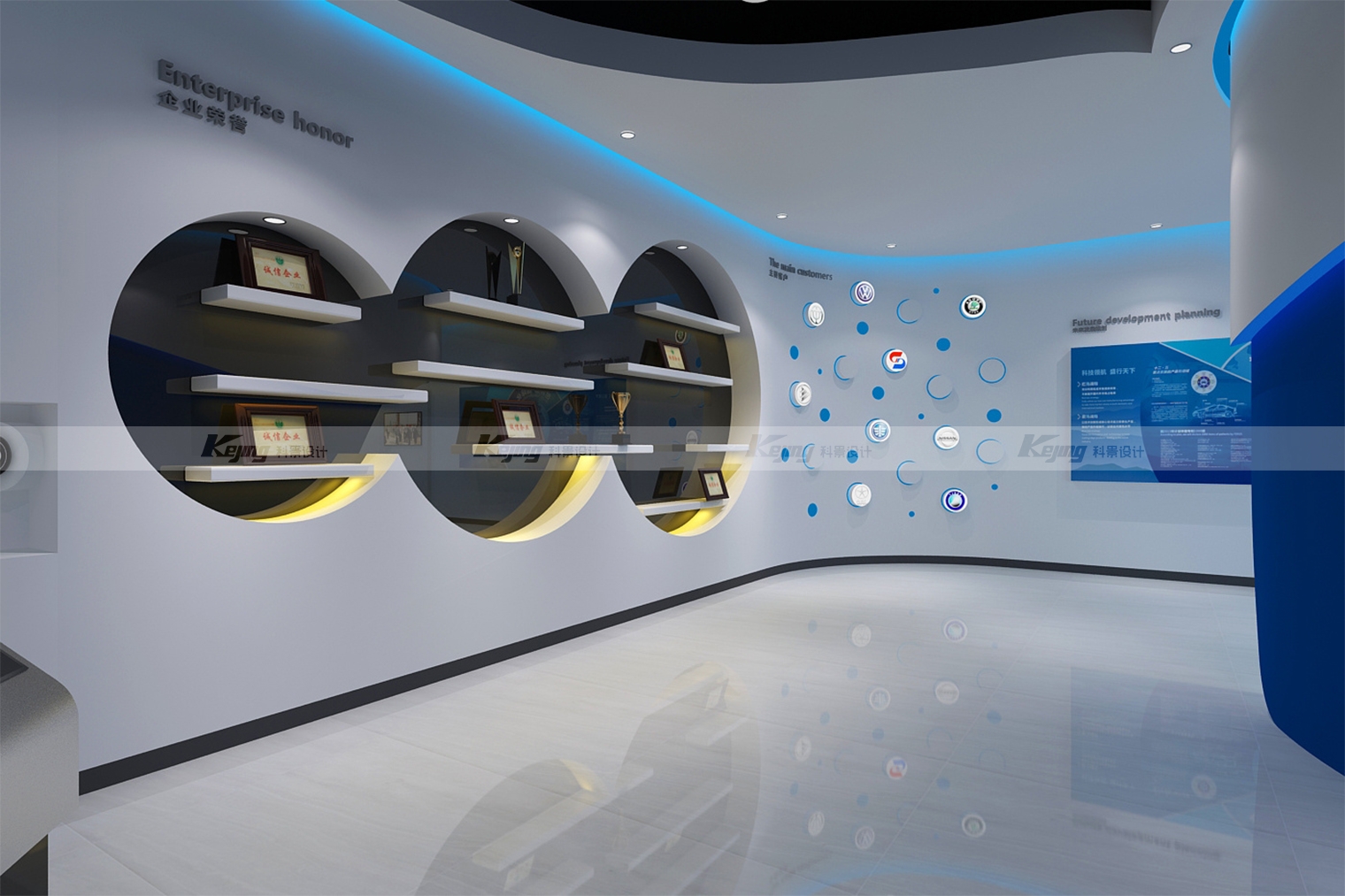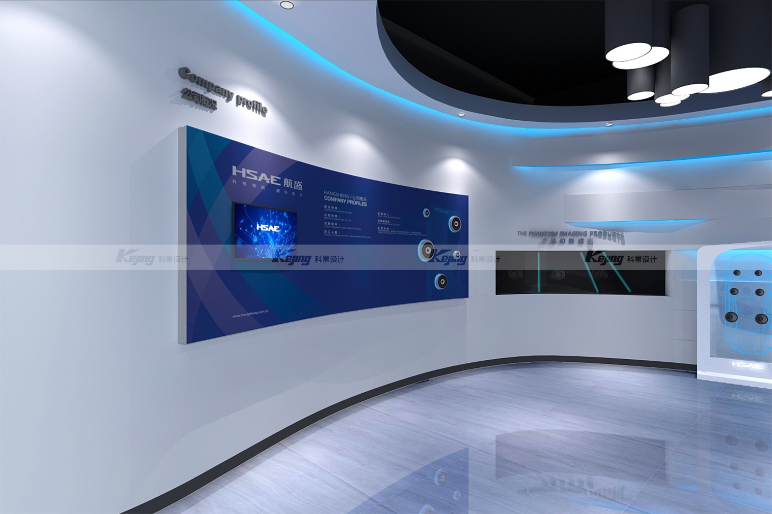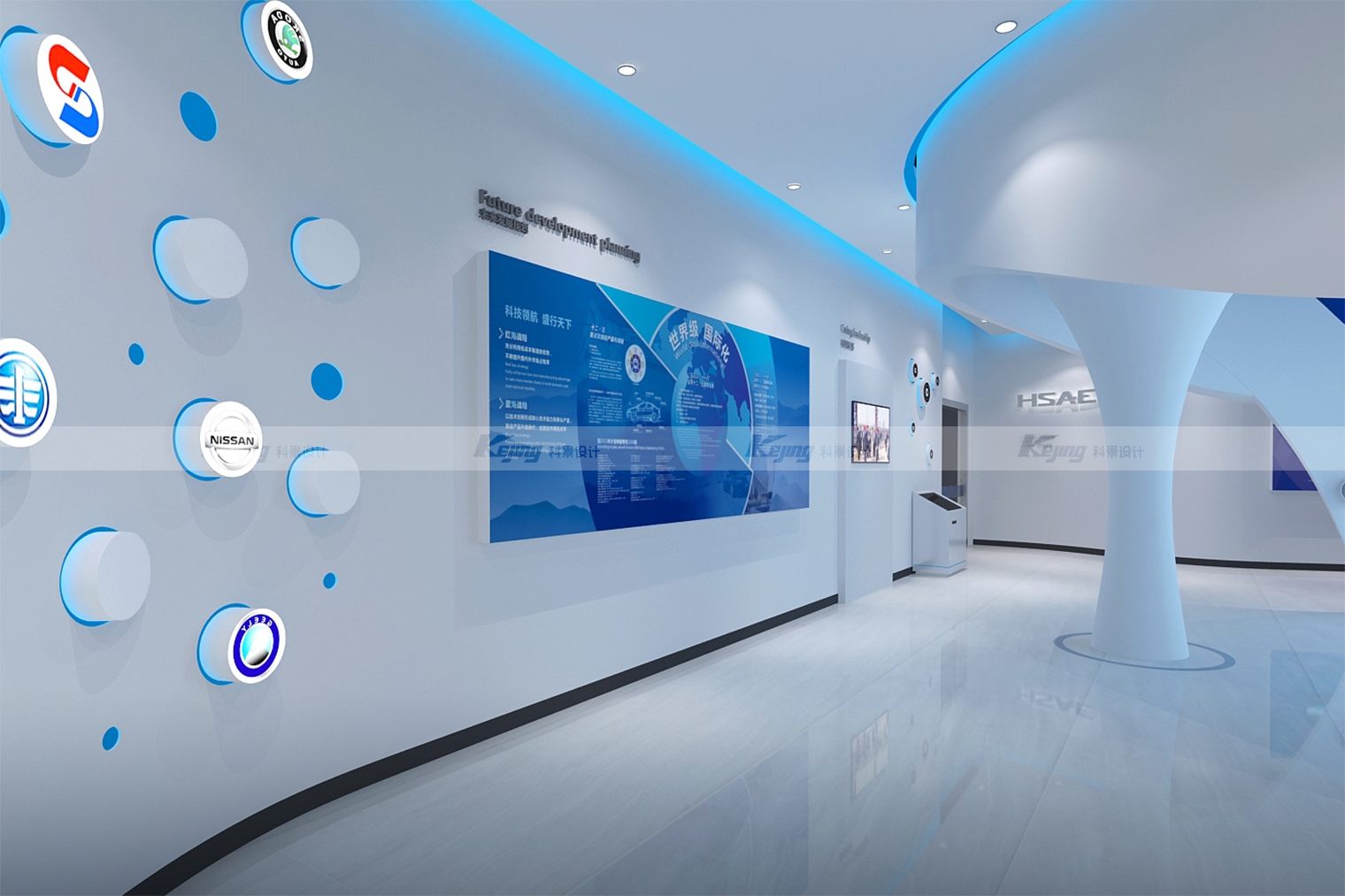 Hangsheng Electronics, China's automotive electronics industry leading enterprises. The construction of the exhibition hall of the enterprise in this case USES advanced means to integrate digital model, 3D animation, planning effect, virtual simulation, multimedia interaction and so on, so that visitors can more truly feel the convenience brought by the product. The main body of the exhibition hall is a combination of blue and white. With blue technology and white atmosphere, the exhibition hall is composed, dignified and scientific and technological. Combined with the lighting effect, it effectively attracts the attention of visitors. This exhibition hall focuses on the lighting effect. Different lighting sets off different products. The color matching of lighting can highlight the coordination of the whole brand and enhance the display value.