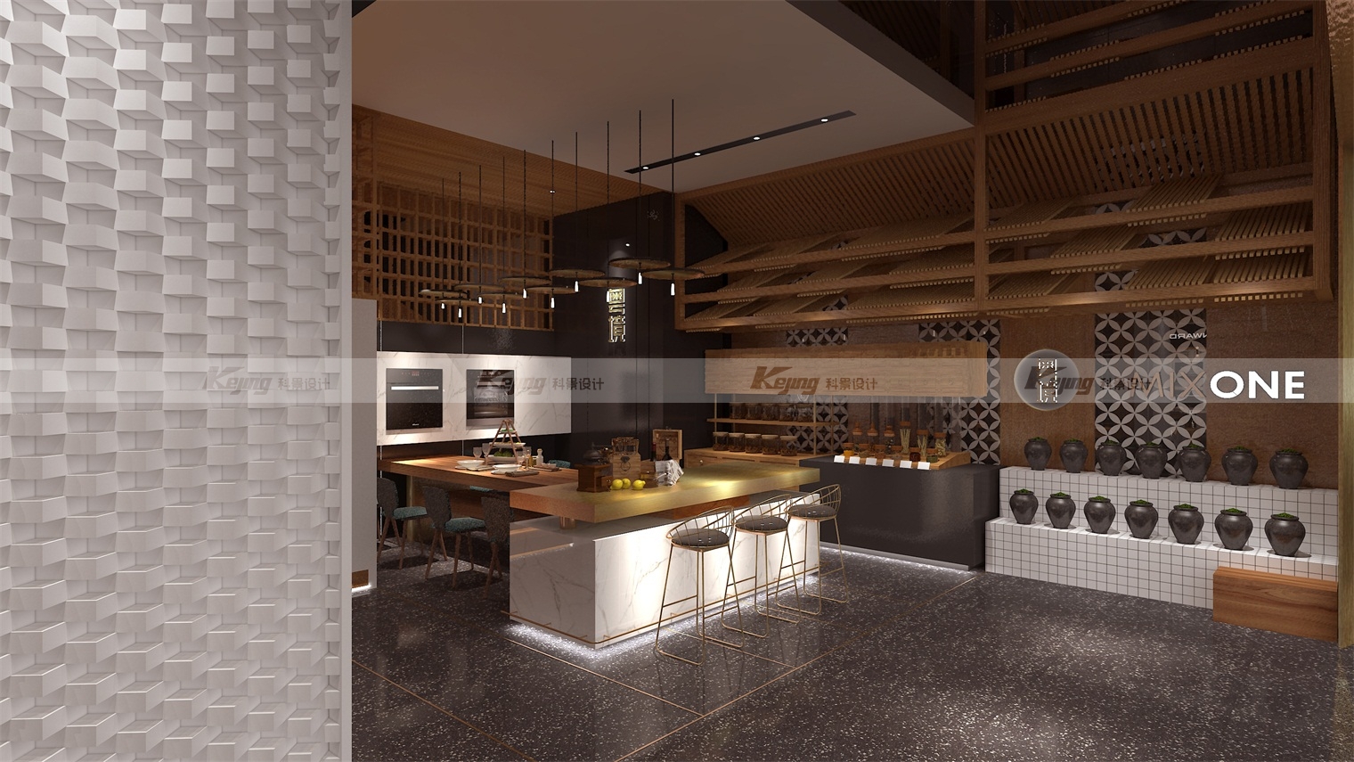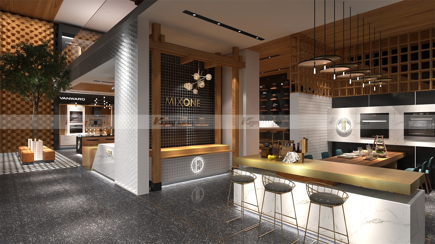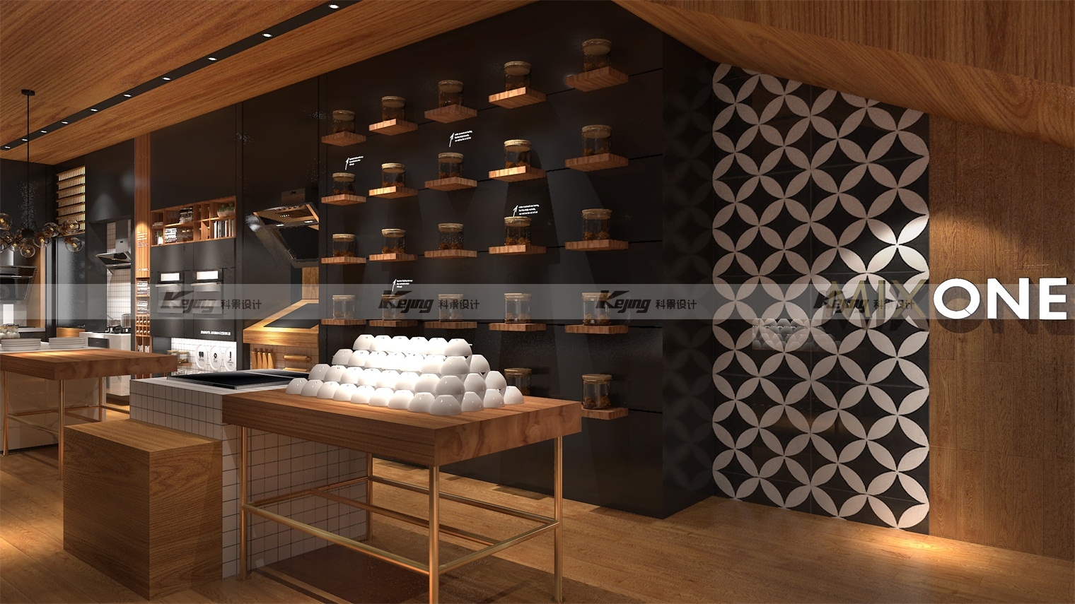 Since the original market of Wanhe was mainly concentrated in fourth-tier and fifth-tier cities, mainly towns and townships, its brand premium ability was not high, and it was extremely urgent to promote the brand height through channels and excessive value. By returning to Wanhe itself and according to the "he" culture of the brand, we put forward the concept of returning to the origin of everything, namely MIXONE, the concept of the integration of everything and the generation of all things. Then, at the terminal, it is promoted with a deeper and high-end scene and implanted into the kitchen culture. Through scenario-based construction, when customers enter the space, it can more intuitively stimulate customer demand and make them stay. When people are placed in a specific space, they will naturally connect with themselves and generate reveries. Such substitution behavior will make them immersed in it and thus generate consumption, which is the key to brand operation and the purpose of our design. To establish a brand image that is deeply rooted in the hearts of the people, so that it is different from the characteristics of similar brands, culture is the key. Designers according to the brand location - Guangdong, for the brand implantation of "Cantonese" concept, penetrating health cantonese cuisine. After skillfully integrating the local food culture into the design, the unique Cantonese food culture of the brand is created, and the brand value and characteristics of Wanhe are deeply implanted into the hearts of consumers.