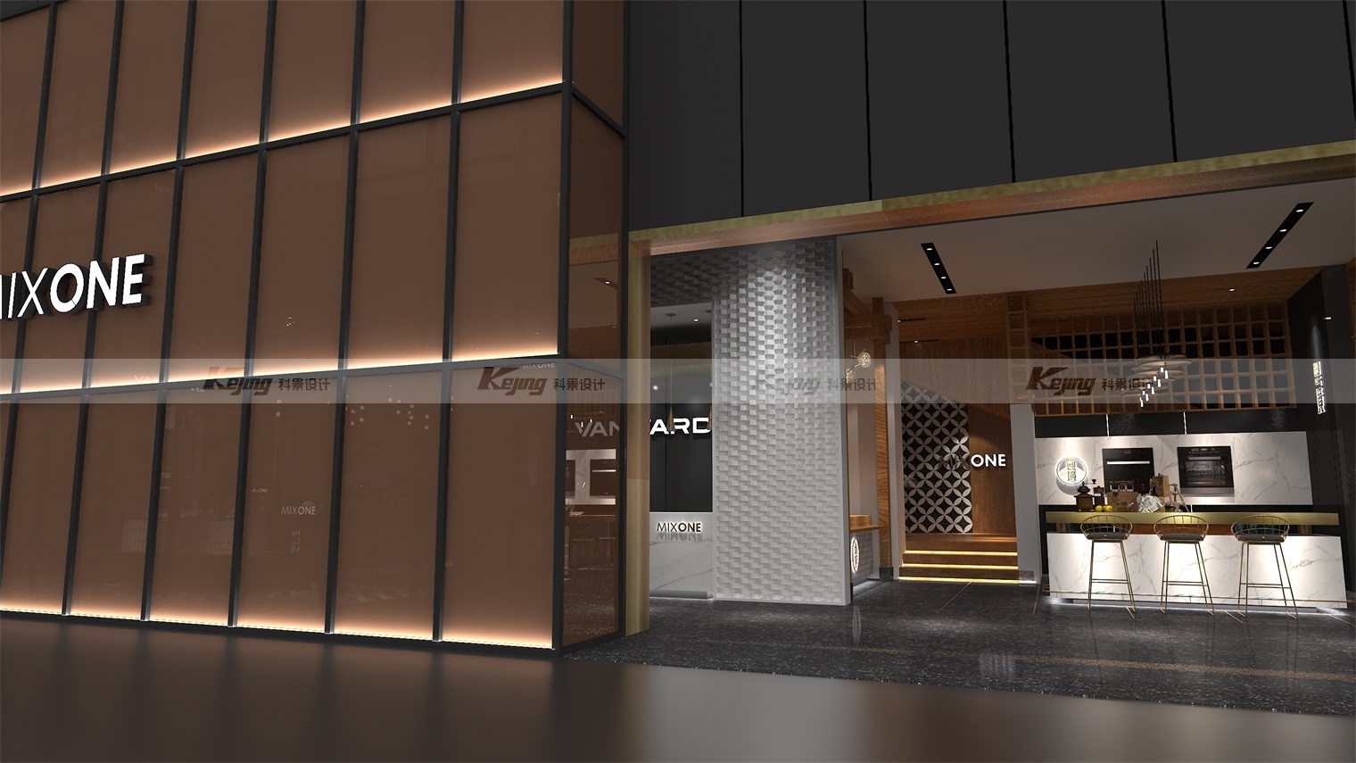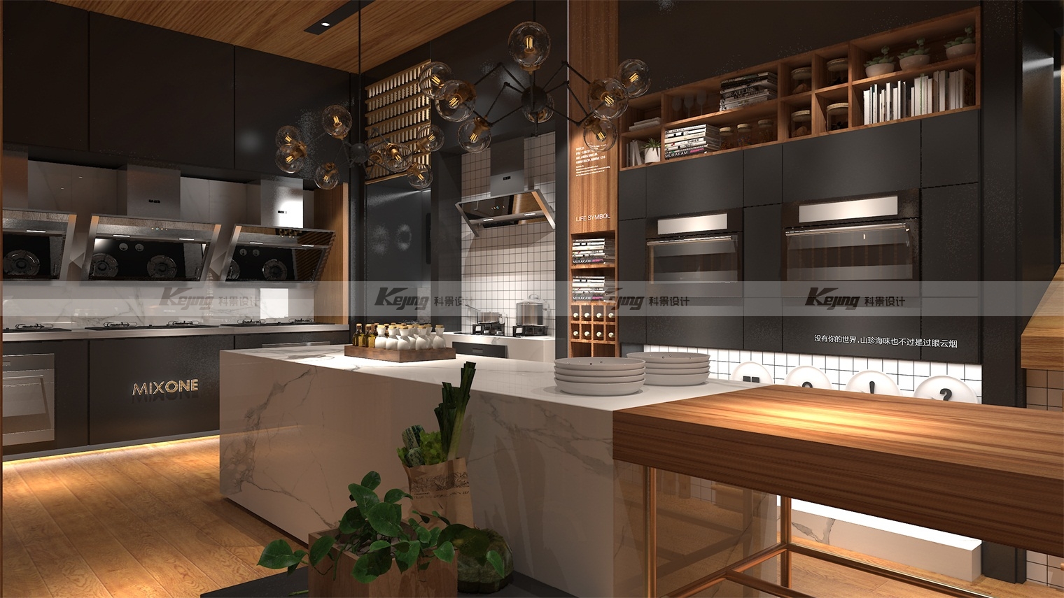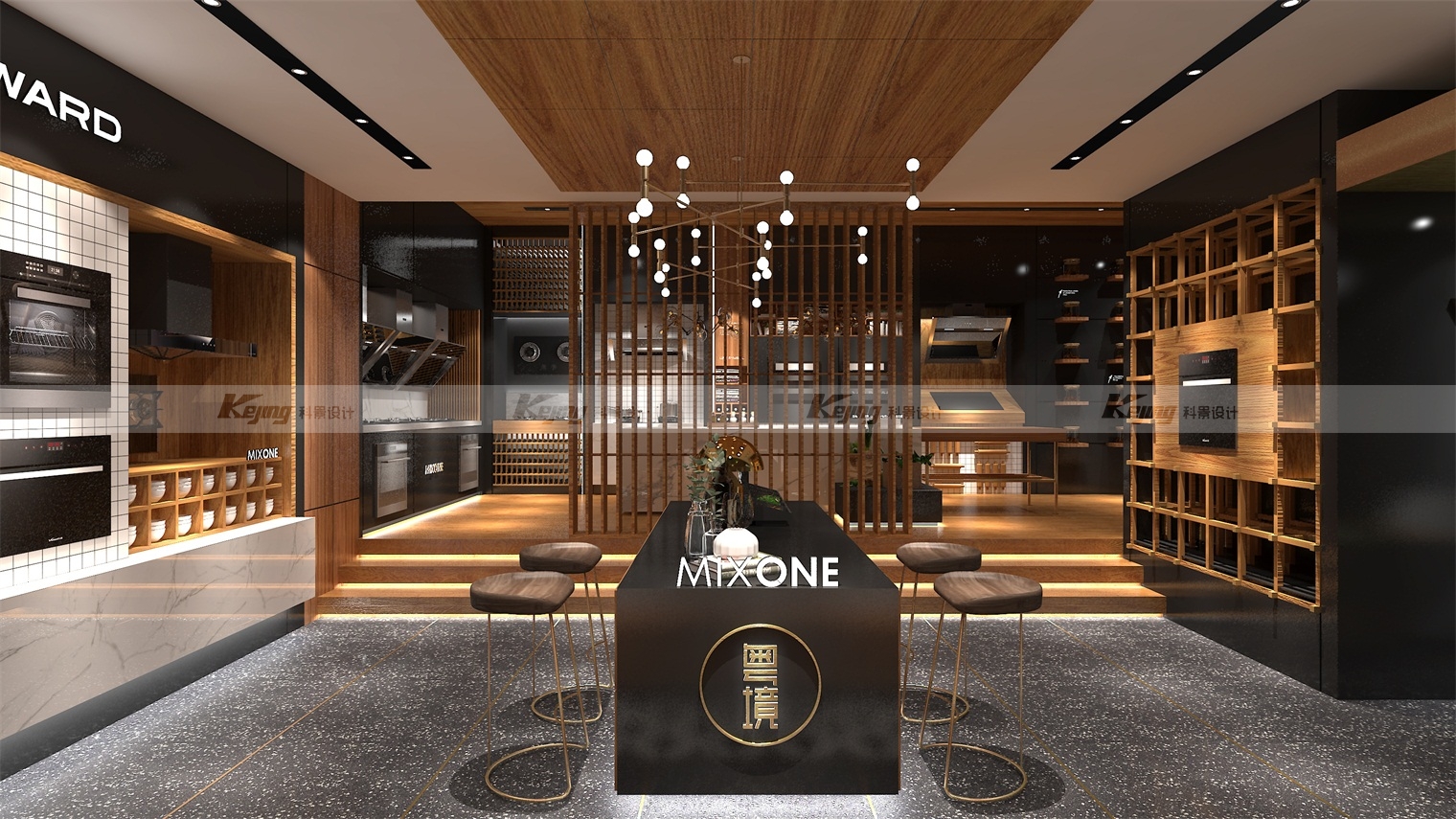 由于万和原先市场主要集中在四五线城市,以乡镇为主,品牌溢价能力不高,渠道拉升,提升溢价值,拉升品牌高度迫在眉睫。我们通过回归万和本身,并根据品牌的“和”文化,提出回归万物本源,即 MIXONE 万物融合,相融相生的概念。继而,在终端,以更深层次、高端化的场景推进,并植入厨房文化。通过场景化营造,当客户进入空间时,能更直观刺激客户需求,使其停留。当人置身于特定空间之中便会自然地与自身联系,产生遐想,而这样的代入行为会使其沉浸其中,从而产生消费,这是品牌运营的关键也是我们设计的目的。要树立深入人心的品牌形象,让它有区别于同类品牌的特性,文化是重点。设计师根据品牌所处地域——广东,为品牌植入“粤境”概念,渗透养生的粤式烹饪方式。将当地的饮食文化巧妙融入设计当中后,打造出品牌特有的粤式餐饮文化,也将万和的品牌价值和特色深深植入到消费者心中。