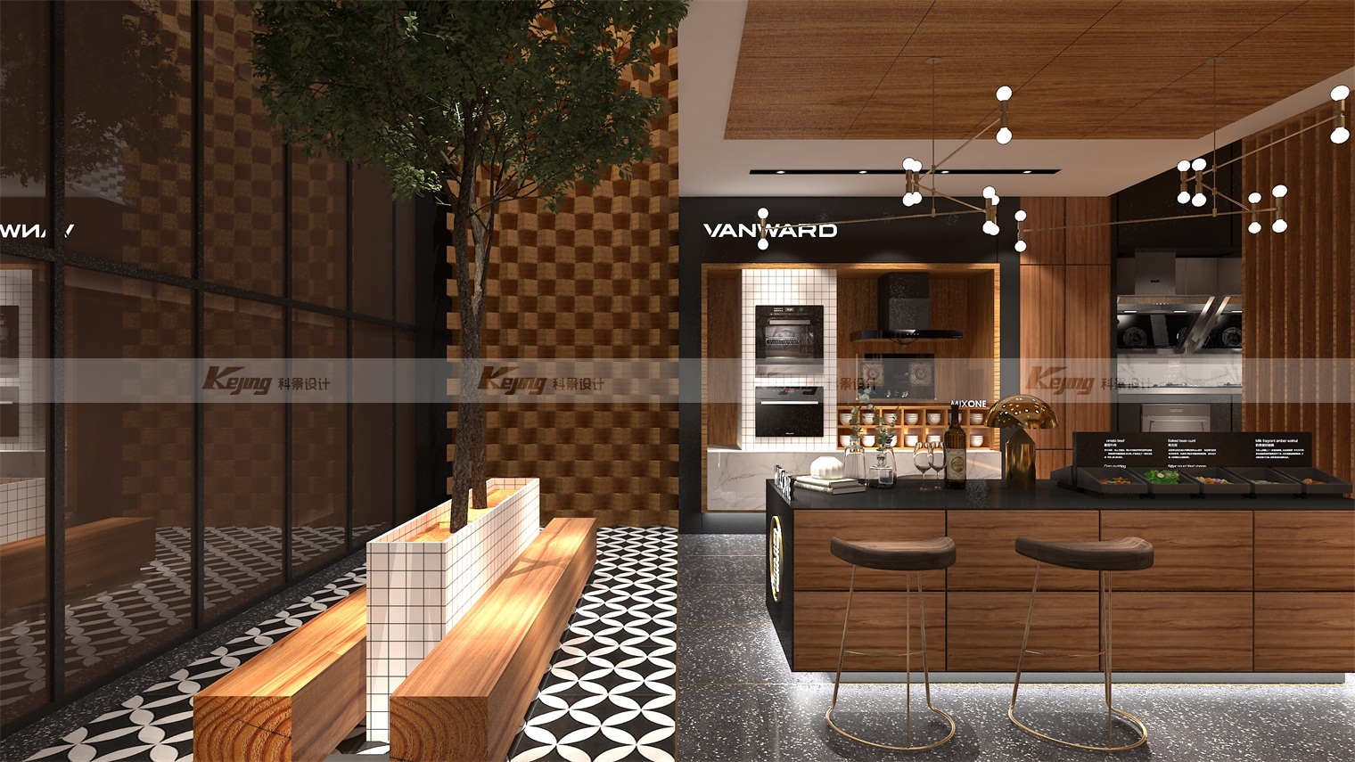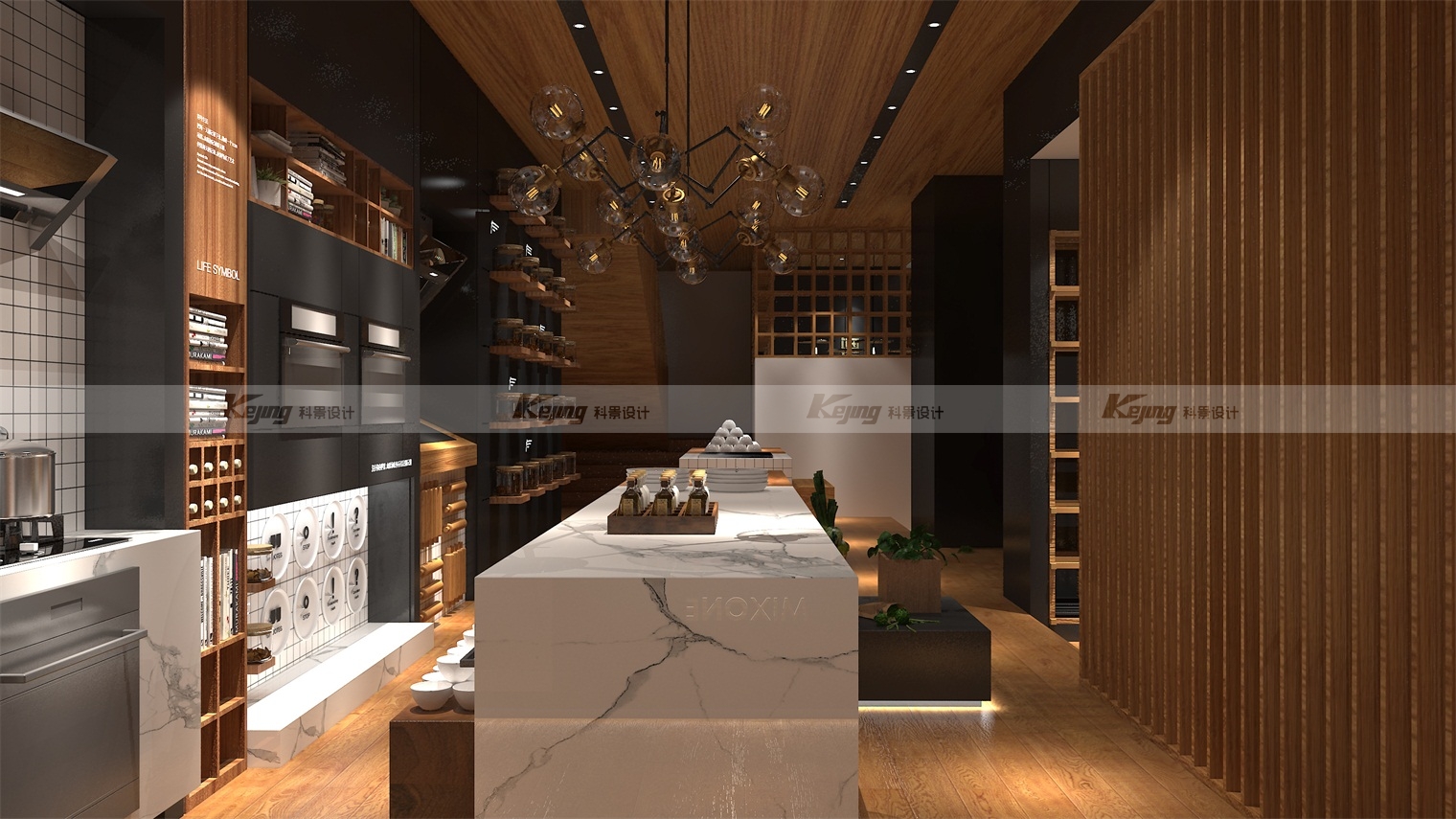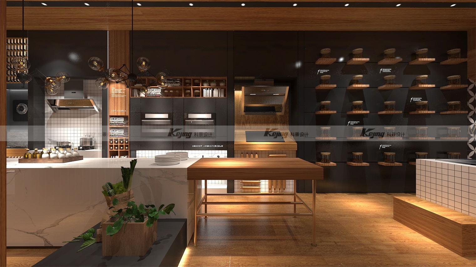 由于万和原先市场主要集中在四五线城市,以乡镇为主,品牌溢价能力不高,渠道拉升,提升溢价值,拉升品牌高度迫在眉睫。我们通过回归万和本身,并根据品牌的“和”文化,提出回归万物本源,即 MIXONE 万物融合,相融相生的概念。继而,在终端,以更深层次、高端化的场景推进,并植入厨房文化。通过场景化营造,当客户进入空间时,能更直观刺激客户需求,使其停留。当人置身于特定空间之中便会自然地与自身联系,产生遐想,而这样的代入行为会使其沉浸其中,从而产生消费,这是品牌运营的关键也是我们设计的目的。要树立深入人心的品牌形象,让它有区别于同类品牌的特性,文化是重点。设计师根据品牌所处地域——广东,为品牌植入“粤境”概念,渗透养生的粤式烹饪方式。将当地的饮食文化巧妙融入设计当中后,打造出品牌特有的粤式餐饮文化,也将万和的品牌价值和特色深深植入到消费者心中。