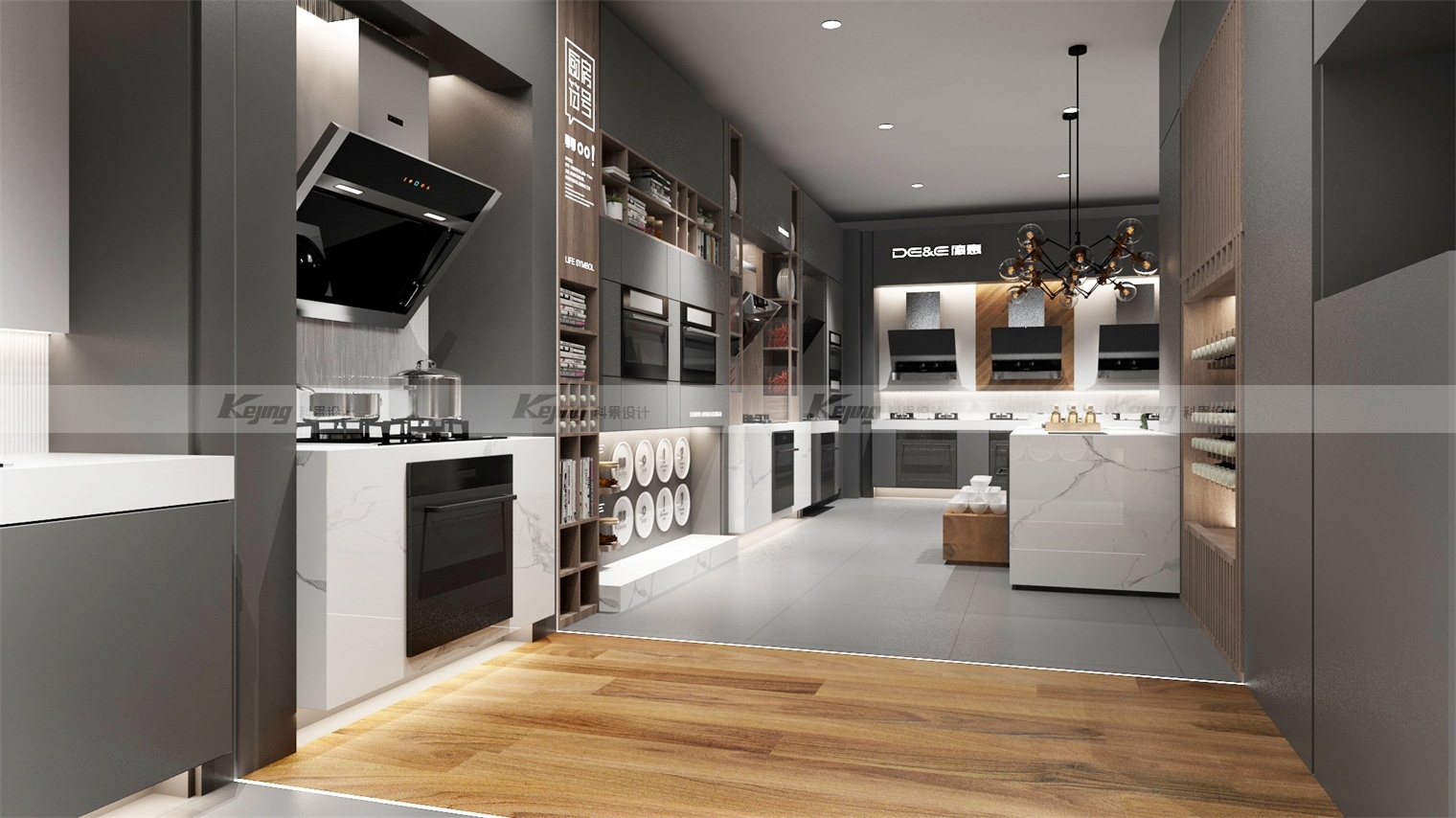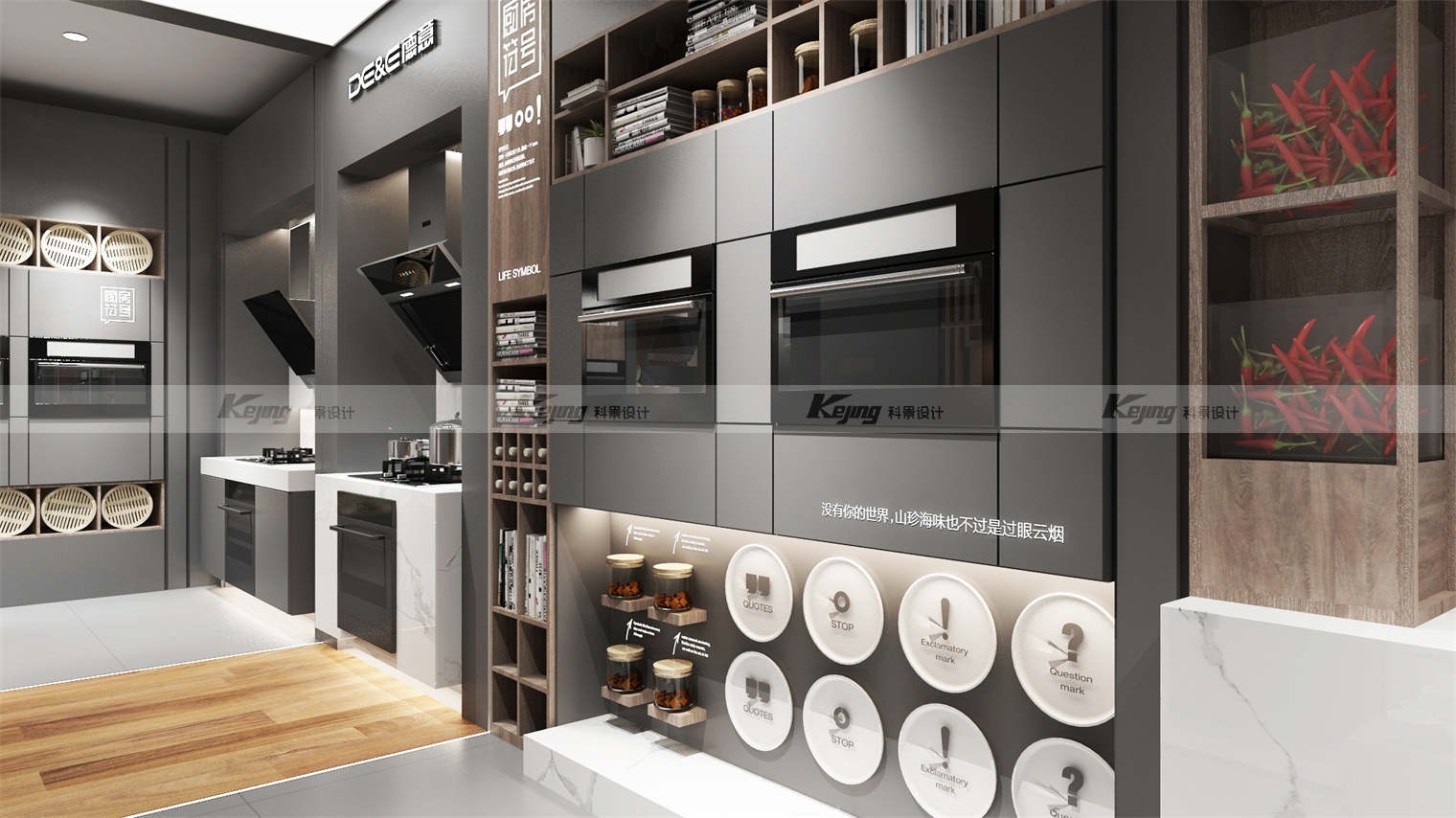 高尚生活,当然德意。德意,通过对于德意品牌的市场调研和深入了解,发现,面对当下的市场环境,德意存在张力缺失,品牌拉力不够等问题。而线下终端,是消费者感知品牌及其产品价值的最直接渠道。如何拉开高度,提升渠道拉力,表达德意的品牌态度,成为这次终端设计的首要问题。当“差异化竞争力”成为家电行业沸腾的议题时,终端的体验不约而同成为了各大品牌竞争的主战场。审时度势,追求创新,迎接变化,提升品牌竞争力,才能在日渐激烈的市场竞争中立于不败之地。我们将德意的产品套系化组合并结合厨房场景,将一个完整的厨房在店内还原,让顾客进店就能体验到真实的厨房场景。无论你是喜欢做高端的米其林大餐、还是喜欢烘焙幸福满满的甜品西点,甚至是大火爆炒的传统中餐,都能在店内精准的找到合适的产品。我们的战略目标就是将德意电器的生活概念传递给每一个消费者,将美好生活的憧憬深刻到消费者心中。